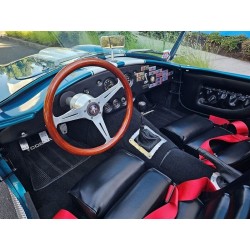 - Très belles jantes Halibrand en 15 ‘' signées Shelby America avec spinners centraux décoraifs en aluminium. D’aspect neuves, ces jantes offrent un important déport intérieur qui renforce le look sportif de cette Cobra JCF, ...sans même parler du caractère attendu du style Halibrand sur une cobra : encore un plus en cas de revente.