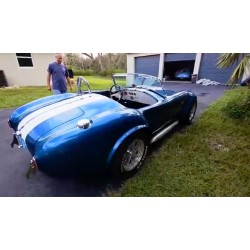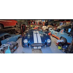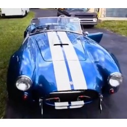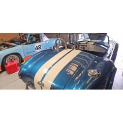 A vendre, Cobra Shell Valley 427 SC de 1987, moteur Ford V8 Small Block Windsor 289 ci , boite 4 , finition extérieure '' Gardsman Blue’' à bandes shelby blanches