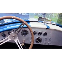 Dès lors, les collectionneurs connaisseurs jugerons même complémentaire le fait de trouver sur notre Shell Valley des pare-chocs de compétition historique nommés '' Quick Jack’' ou ''Quick Lift ‘’. Le mimétisme est donc complet et colle parfaitement avec l’imaginaire collectif en matière de 427 Semi Compétition (S.C ). Il en est de même pour le tableau de bord sobre et technique en aluminium poli. Ce dernier ajoute aussi une pointe de pérennité à cet intérieur ‘’ spartiate soumis aux 4 vents et à la pluie. Si la plupart des Shelby cobra originelles arboraient un tableau de bord encollé d’un basic simili noir ; les pilotes cartésiens votaient le plus souvent pour un indéfectible tableau de bord technique en alu poli